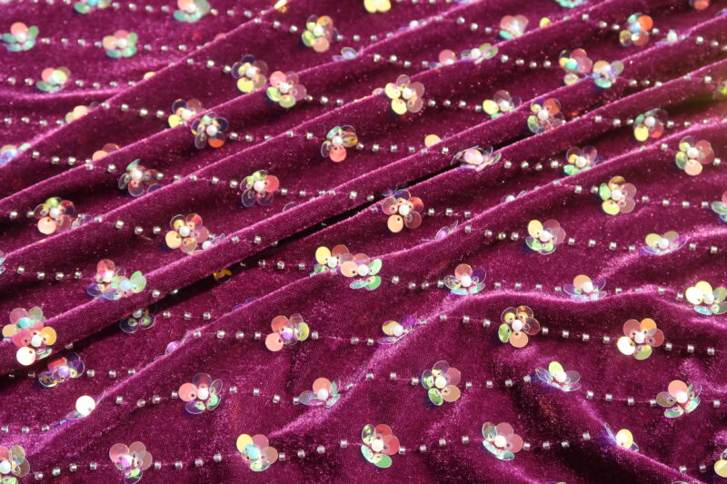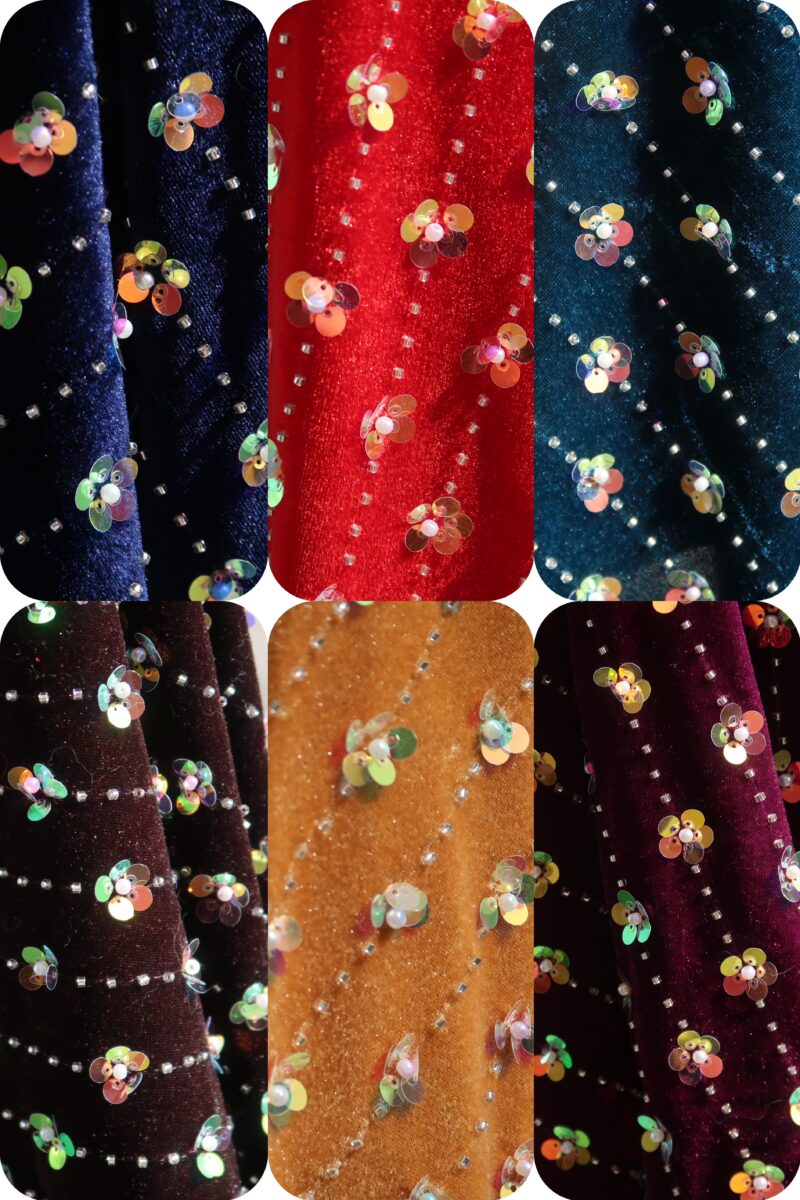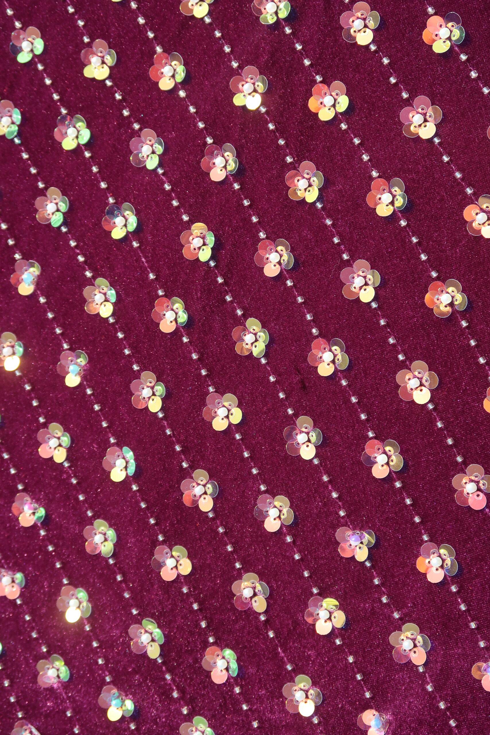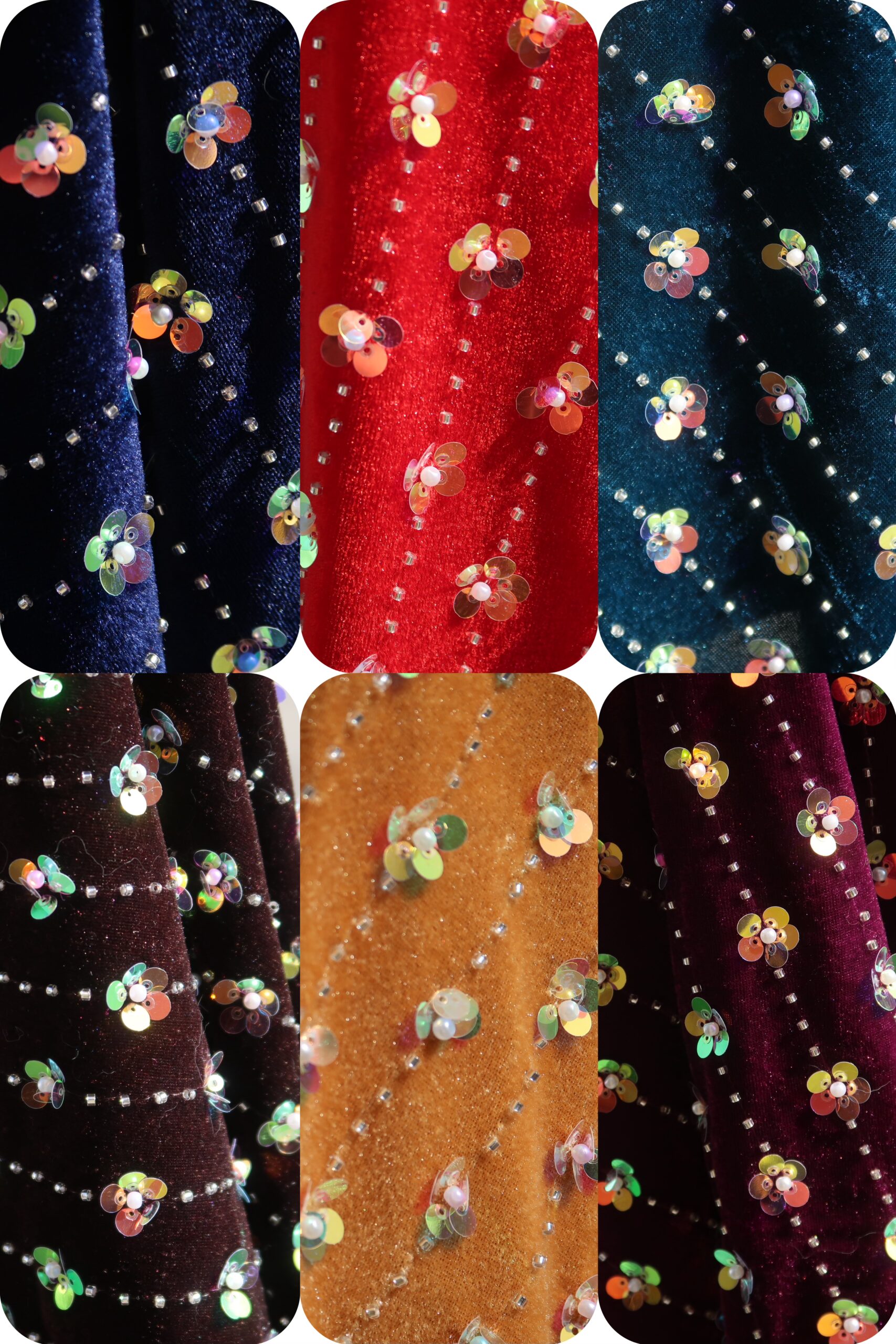 Flower Sequins With Beaded Embroidery On Net Fabric